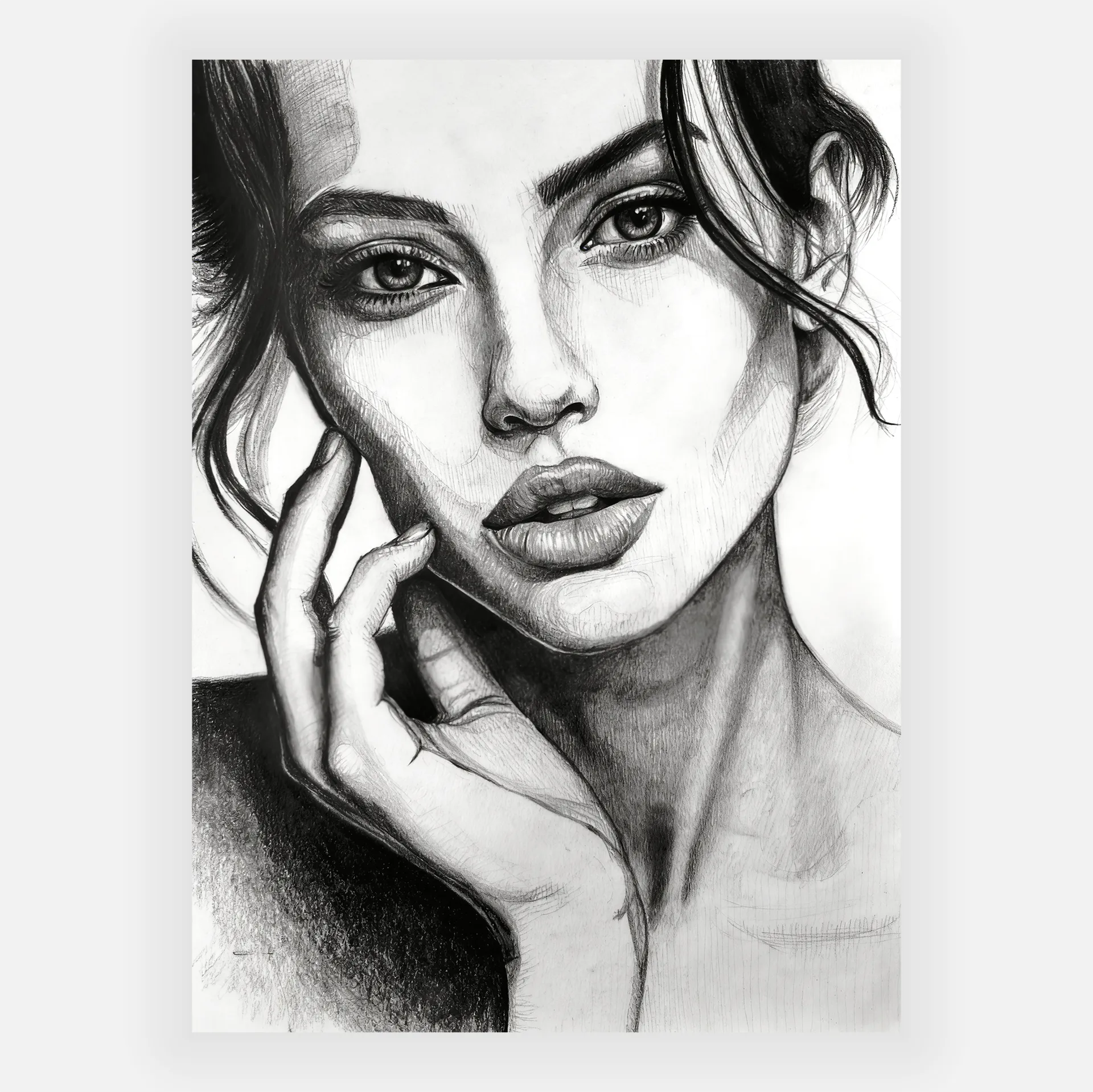 Dessin au graphite sur papier, entre réalisme et écriture personnelle. Les couches se superposent, les lignes se croisent, jusqu’à ce que l’émotion tienne sans décor. J’ai voulu une beauté sans artifice, une présence calme et sûre d’elle, comme un hommage à la femme vraie – celle qui ne joue pas à paraître, celle qui tient sa lumière.